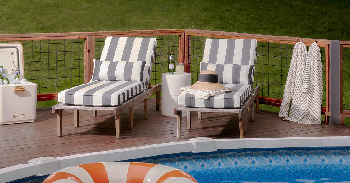 Initially, the couple thought about tearing the whole thing down and replacing it with a garage, but when their first summer came around, they found that they actually loved having a pool. All that needed to change was its appearance, so one day, Brit took matters into her own hands. With a hammer and brute strength, she pulled all the siding off the elevated platform. “I was like, well now we have to fix it,” she says. Ahead, they reveal how they made their above-ground pool actually cool.